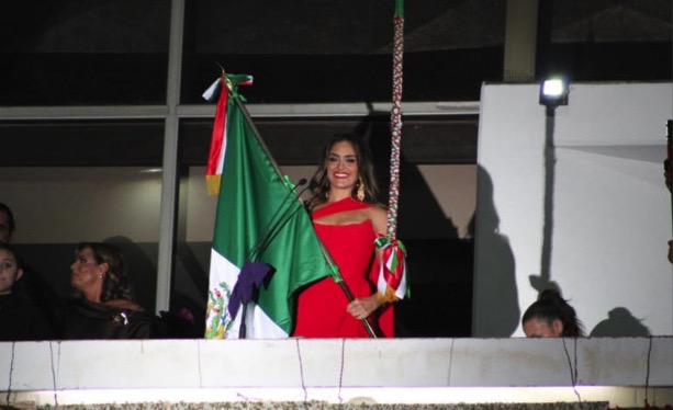 En punto de las 22:50 horas, Rojo de la Vega recibió el lábaro patrio de manos de una escolta femenina conformada por estudiantes, lo que dio solemnidad al protocolo cívico.