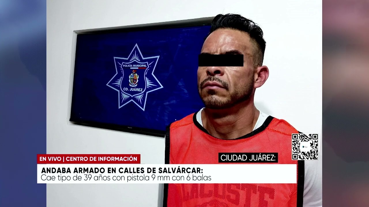 Cae tipo de 39 años con pistola 9 mm con 6 balas