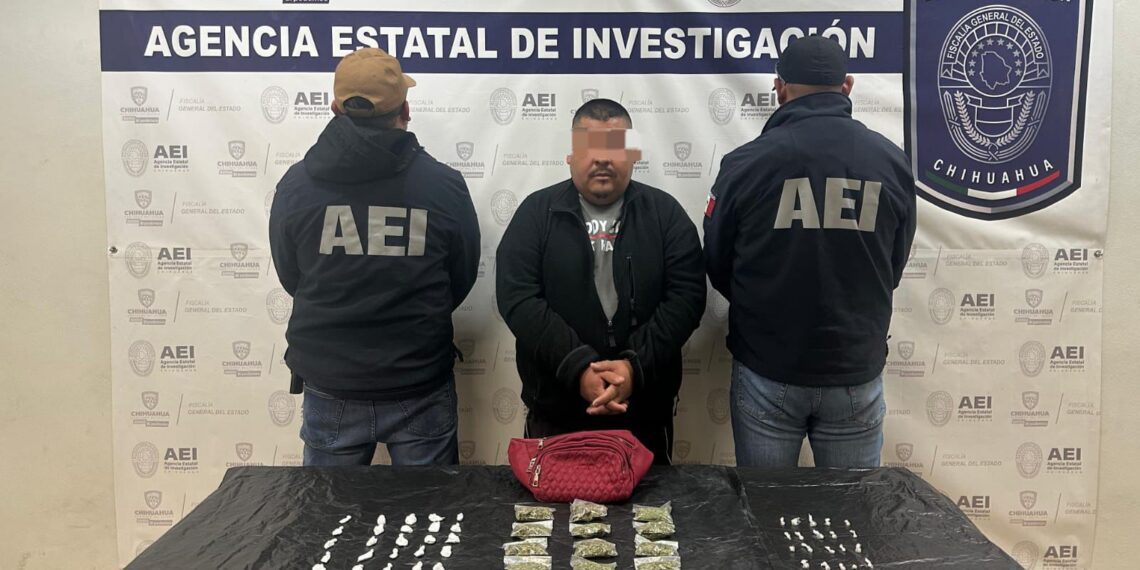 Elementos de la Agencia Estatal de Investigación de la Fiscalía de Distrito Zona Norte, detuvieron en flagrancia a un presunto distribuidor de narcóticos al menudeo, cuando deambulaba por la colonia Chihuahua, en Ciudad Juárez.