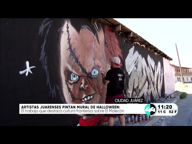 Artistas Juarenses pintan mural de Halloween