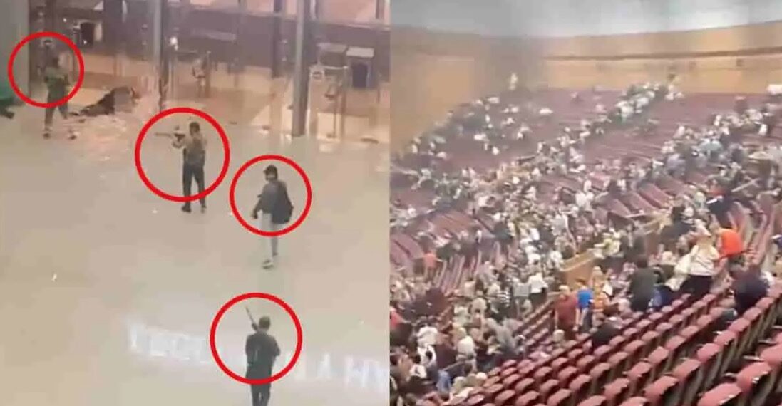 En uno de los peores ataques de este tipo en Rusia en años, al menos cinco sujetos aparecieron en videos disparando repetidamente contra civiles que gritaban y se escondían en las butacas en la sala de conciertos mientras el grupo de rock de la era soviética “Picnic” estaba a punto de actuar.