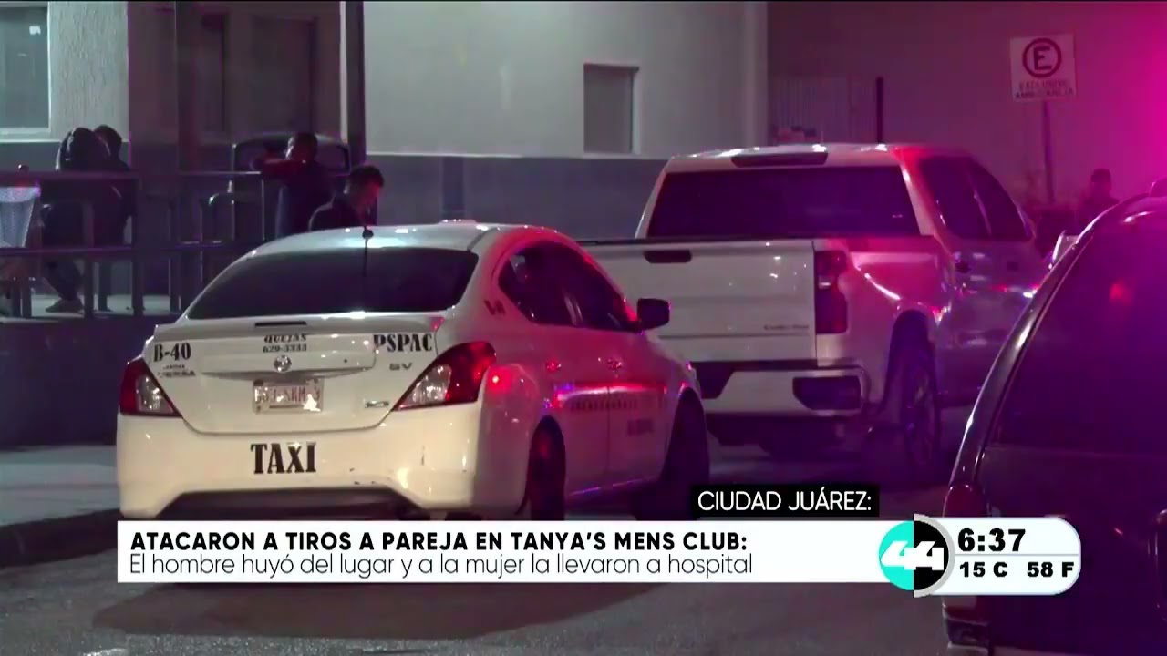 Ciudad Juarez, Chih.- Un ataque armado se registró en el centro nocturno denominado Tanya’s Club, donde una pareja resultó lesionada tras la irrupción de sujetos armados. La mujer, identificada como Kenia Cristina R. C. de 26 años y aparente trabajadora del lugar, fue trasladada inicialmente a la clínica 66 del IMSS; sin embargo, al no ser derechohabiente, fue rechazada y posteriormente llevada al área de urgencias del Hospital General a bordo de una camioneta Chevrolet Silverado 2022 de color blanco. Por otro lado, un hombre identificado como Tomás L. H. de 28 años recibió un impacto de bala en la pierna y se retiró del negocio por sus propios medios en un vehículo Dodge Caliber, argumentando inicialmente que el ataque ocurrió en su hogar. La Fiscalía General del Estado aseguró la camioneta Silverado, la cual presentaba impactos de bala en la carrocería, e inició las investigaciones para establecer el móvil del ataque; hasta el momento no se reportan personas detenidas por estos hechos.