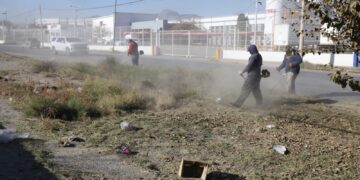Juárez Realizan mantenimiento en camellón de la calle Parque Industrial Juárez para mejorar imagen urbana diciembre 23, 2025