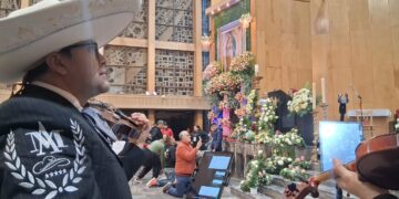 Juárez Feligreses cantan las Mañanitas a la Virgen en Catedral con mariachi y banda diciembre 12, 2025