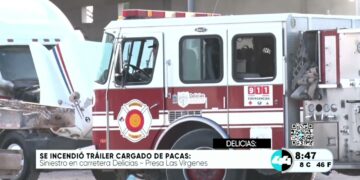 Se incendio tráiler cargado de pacas