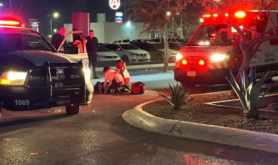 Ciudad Juárez, Chih., 6 de noviembre de 2025.— Autoridades viales realizan las investigaciones correspondientestras un incidente ocurrido frente a Plaza Ramacoi, donde una mujer aparentemente se habría arrojado frente a un vehículo en movimiento.