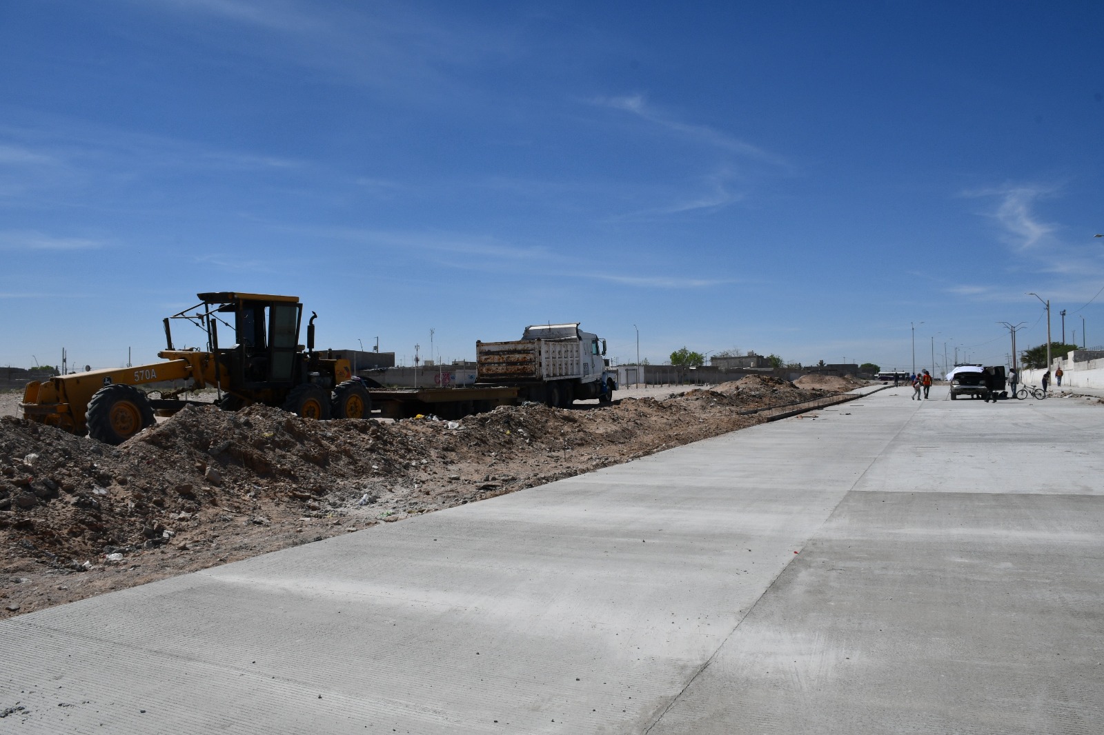 Ciudad Juárez, Chih.– Con el objetivo de seguir urbanizando el suroriente de la ciudad, la Dirección General de Obras Públicas trabaja en la pavimentación de la avenida Lote Bravo, en el tramo que comprende de la calle Fortín de la Soledad al bulevar Zaragoza.