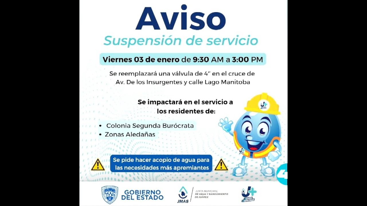 Aviso de suspensión de servicio de la Jmas