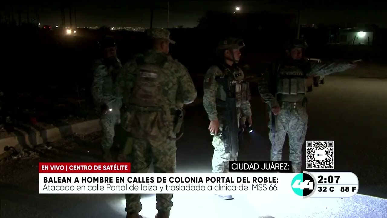 Ciudad Juárez, Chih.- Durante la noche del miércoles, se registró una intensa movilización policial tras un reporte de violencia en el fraccionamiento Portal del Roble, donde un hombre resultó herido tras un ataque directo con arma de fuego. El incidente ocurrió exactamente en el cruce de las calles Portal de Albicía y Portal de Balsa