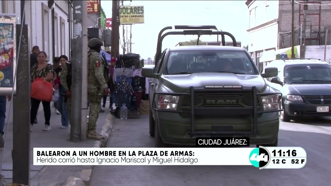 Un hombre resultó herido tras un ataque con arma de fuego ocurrido a un costado de la Catedral de Ciudad Juárez, en plena Plaza de Armas. De acuerdo con los primeros reportes, la víctima fue sorprendida por sujetos armados que dispararon en su contra en una de las zonas más concurridas del sector centro.