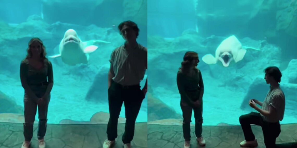 El momento fue compartido en Instagram por Gavin Cadehulberg, quien decidió pedirle matrimonio a su novia, a quien describe como “el amor de su vida” y su “compañera de crímenes”. Para hacer la ocasión aún más especial, Gavin eligió un acuario como escenario y pidió a sus amigos que tomaran una fotografía de la pareja frente al tanque de la ballena beluga.