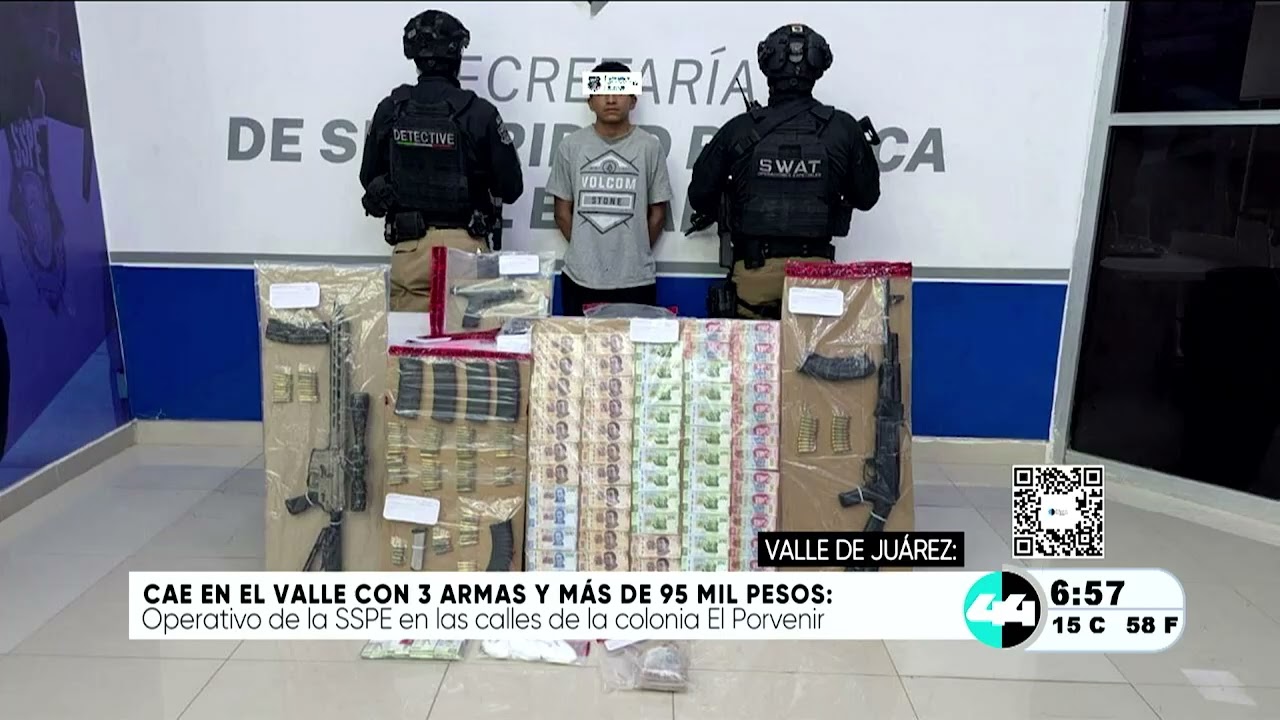 Ciudad Juarez, Chih.- En un operativo conjunto de las autoridades estatales, se logró la detención de un hombre identificado como Christopher Osvaldo R. G., señalado como un presunto generador de violencia en la zona del Valle de Juárez. El arresto ocurrió el pasado 8 de abril en el poblado de El Porvenir, específicamente en el cruce de las calles Emilio Carranza y Francisco I. Madero. Al momento de su detención, el sospechoso intentó evadir a los agentes, pero fue sometido a una revisión. Durante la inspección, se le aseguraron tres armas de fuego de alto poder, así como múltiples cargadores y cartuchos útiles de diversos calibres. Además, el individuo se encontraba en posesión de dosis de cocaína y ketamina, y transportaba 95,000 pesos en efectivo. Tras su captura, fue trasladado a Ciudad Juárez y puesto a disposición de la Fiscalía General de la República (FGR) para determinar su situación legal y el origen de los objetos incautados.