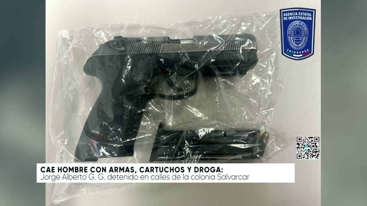 Cae hombre con armas, cartuchos y droga