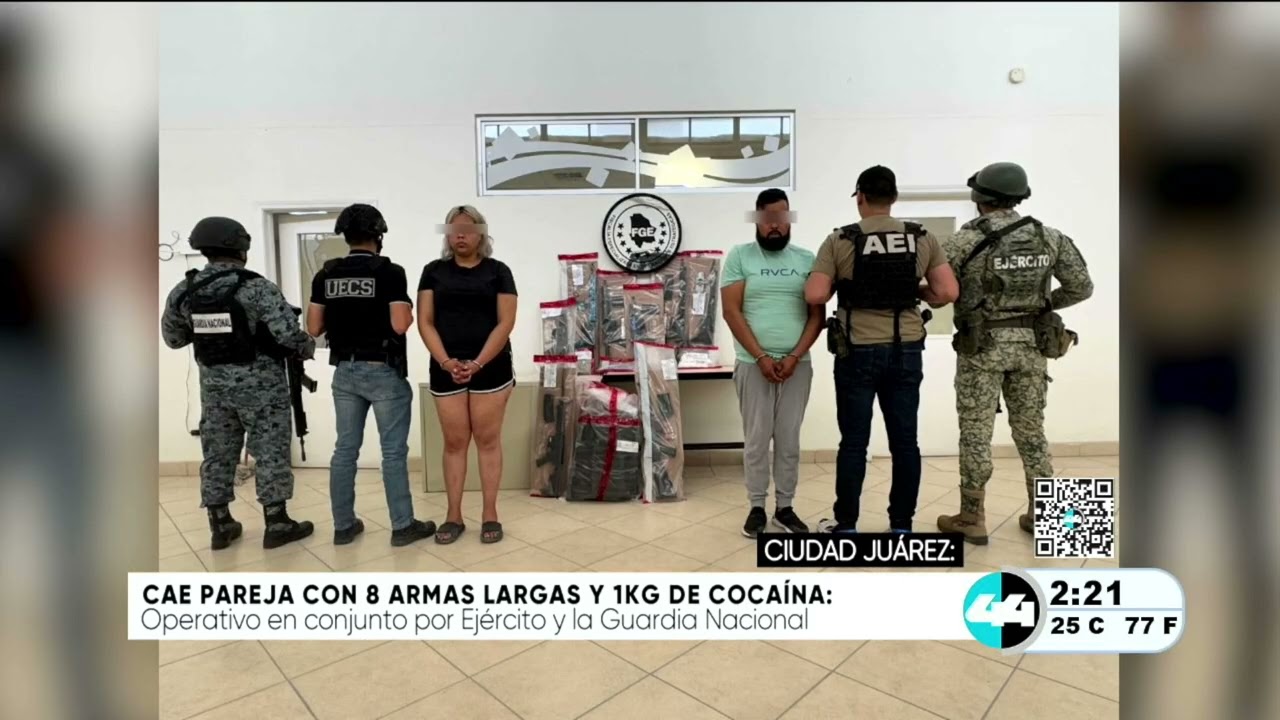 Cae pareja con 8 armas largas y 1kg de cocaína