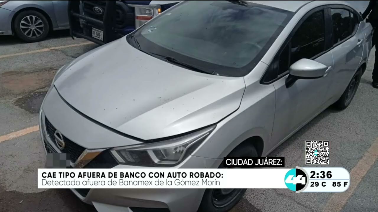 Cae tipo afuera de banco con auto robado