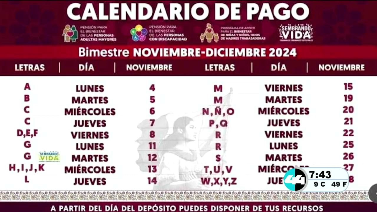 Calendario de pago Bienestar