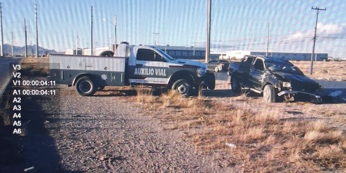 Ciudad Juárez, Chih.- Una camioneta terminó completamente destrozada tras volcarse sobre la carretera que conduce hacia la planta Electrolux en Ciudad Juárez.