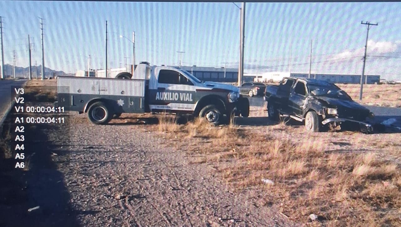 Ciudad Juárez, Chih.- Una camioneta terminó completamente destrozada tras volcarse sobre la carretera que conduce hacia la planta Electrolux en Ciudad Juárez.