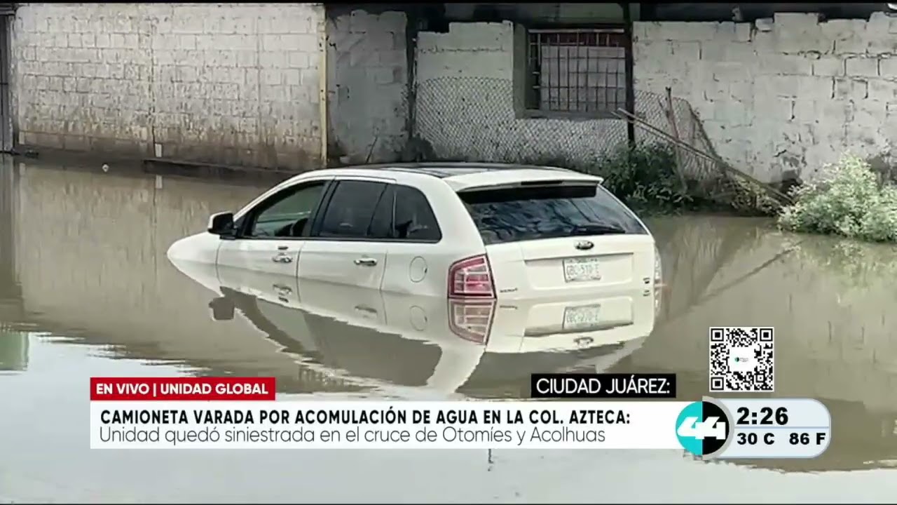 Camioneta varada por acumulación de agua en la Col. Azteca