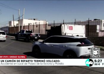 Un camión de repartidor terminó volcado