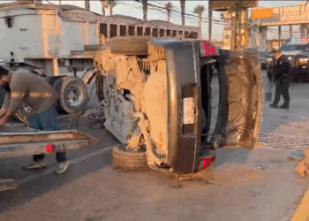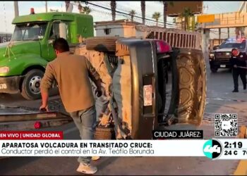 Juárez Conductor se pasa la luz roja y provoca volcadura frente a Las Misiones; responsable huyó del lugar noviembre 28, 2025
