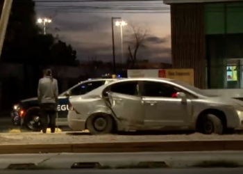 Juárez Accidente en la Av. Tecnológico: Auto Honda impacta poste y obstruye carril confinado febrero 13, 2025