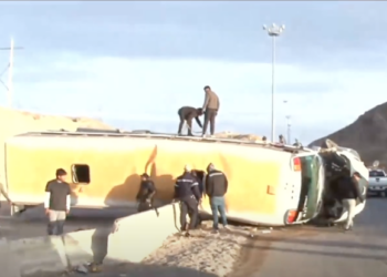 Juárez Camión de transporte personal se vuelca en el Camino Real tras falla mecánica febrero 12, 2025