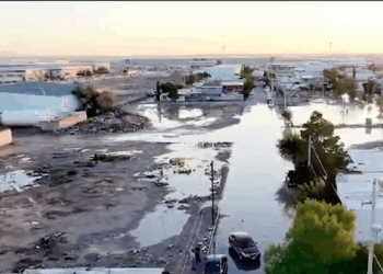 Juárez Dron capta severas inundaciones en Jardines del Aeropuerto; calles y parques bajo el agua octubre 16, 2025