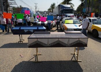 Nacional Transportistas protestan con ferétros por violencia e inseguridad en la mexicana Acapulco abril 17, 2025