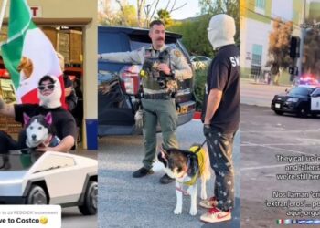 Viral Estadunidense se manifiesta con una bandera mexicana en apoyo a migrantes deportados en EU y lo detiene la policía febrero 23, 2025