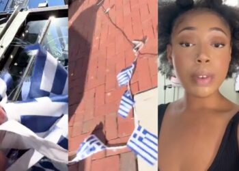 Viral Mujer va a restaurante y derriba banderas de Grecia; la confundió con la de Israel octubre 17, 2024