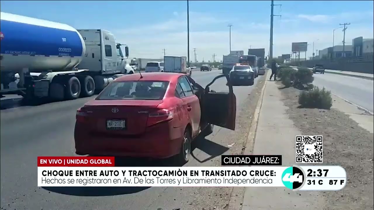 Ciudad Juárez, Chih.- Un accidente vial de carácter aparatoso se registró esta mañana en una de las arterias más transitadas de la ciudad, donde un automóvil particular terminó volcado tras ser impactado por un tractocamión. El percance ocurrió sobre el Libramiento, en el sentido de oriente a poniente, poco antes de llegar al cruce con el Bulevar Talamás Camandari y la Avenida de las Torres
