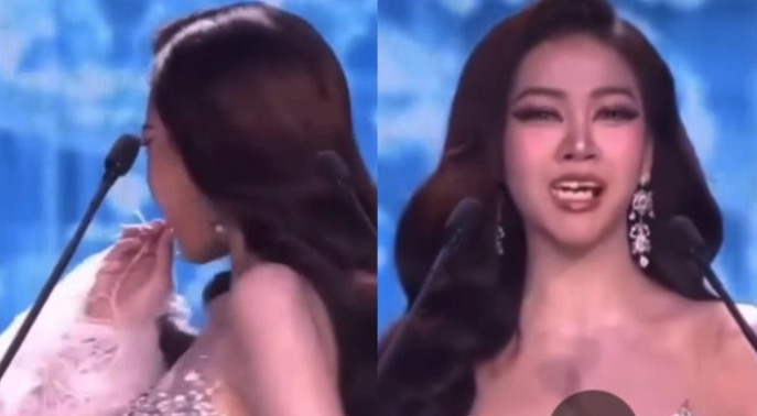 Se trata de Kamolwan Chanago, representante de Pathum Thani, quien vivió un momento inesperado al realizar su primera aparición en el escenario. Mientras se presentaba ante el jurado y el público, su dentadura se movió de lugar, generando un instante de tensión que fue captado en video.