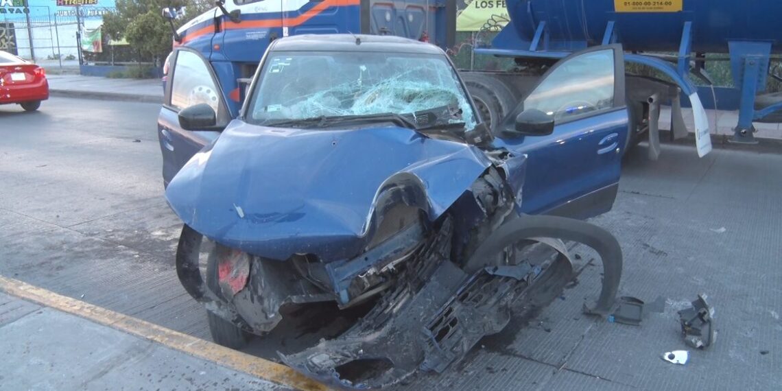 Ciudad Juárez, Chihuahua.- Un aparatoso accidente se registró la mañana de este lunes en el cruce de Paseo de la Victoria y De los Cerda, donde un conductor perdió el control de su vehículo al circular a exceso de velocidad.