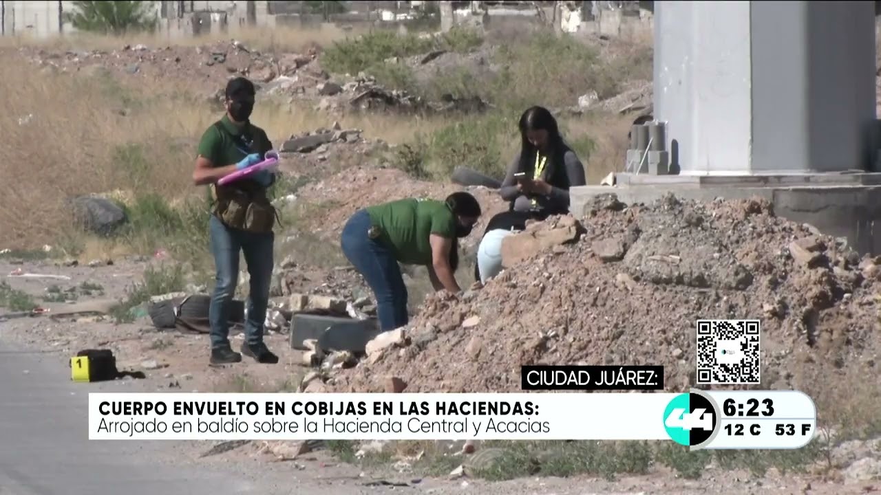 Ciudad Juarez, Chih.- Un nuevo hecho de violencia se registró en el fraccionamiento Las Haciendas, donde se reportó el hallazgo de un cadáver envuelto en cobijas. El cuerpo fue abandonado en un lote baldío ubicado sobre la calle Hacienda Central, muy cerca del cruce con la calle Acacias. Fueron vecinos que transitaban por la zona quienes se percataron del bulto y solicitaron auxilio a través del número de emergencias 911. Al arribar al lugar, elementos de la Policía Municipal confirmaron que se trataba del cuerpo de un hombre, el cual se encontraba atado de pies y manos y envuelto en una tela de color claro. Agentes investigadores de la fiscalía se presentaron en la escena para recolectar evidencias, mientras que personal del Servicio Médico Forense (SEMEFO) realizó el levantamiento y traslado del cuerpo a sus instalaciones para continuar con las investigaciones y determinar la causa de muerte.