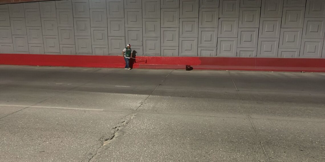 Ciudad Juárez, Chih. – Personal de la Dirección de Limpia continúa con los trabajos de pintura y limpieza en el puente ubicado en la intersección de la avenida Manuel J. Clouthier y De las Torres, como parte del programa municipal Cruzada del Cambio, informó el titular de la dependencia, Gibran Solís Kanahan.