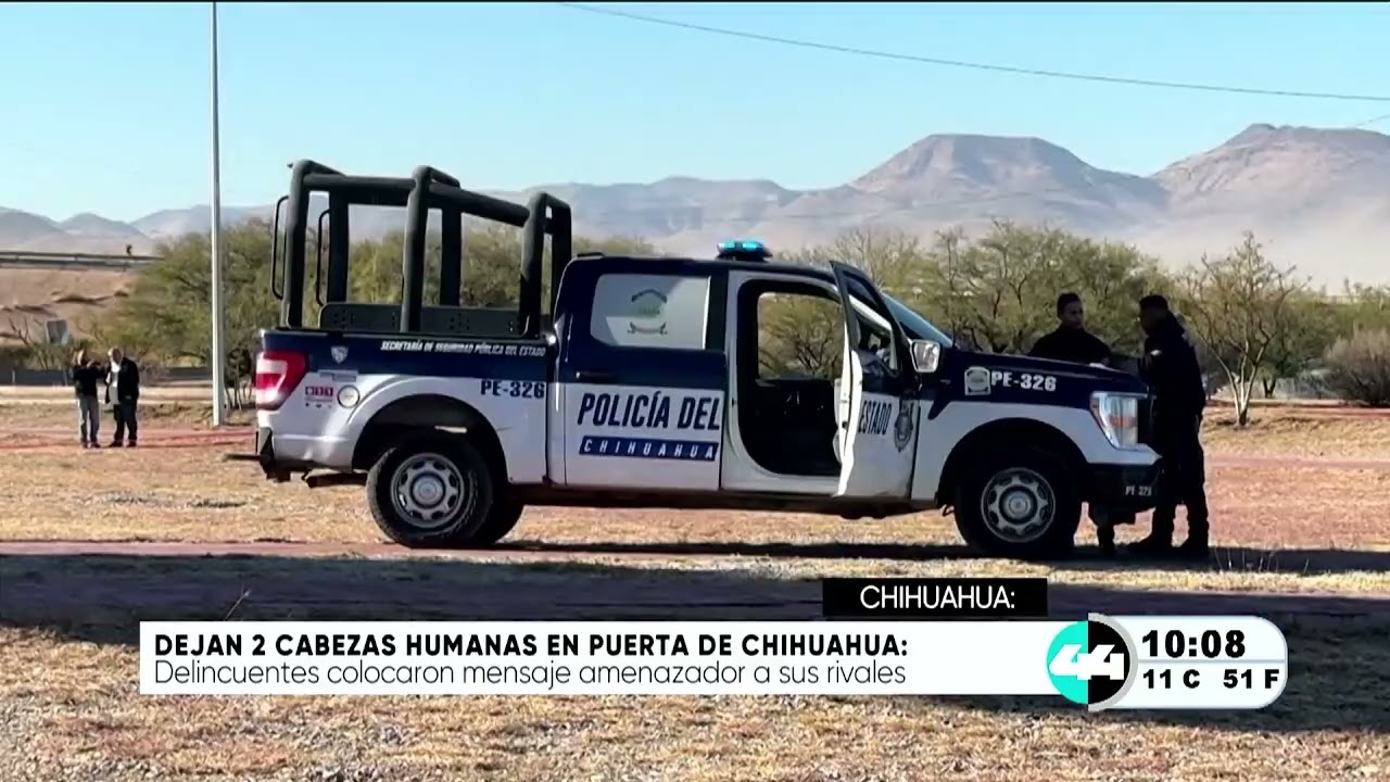 Dejan 2 cabezas humanas en puerta de Chihuahua