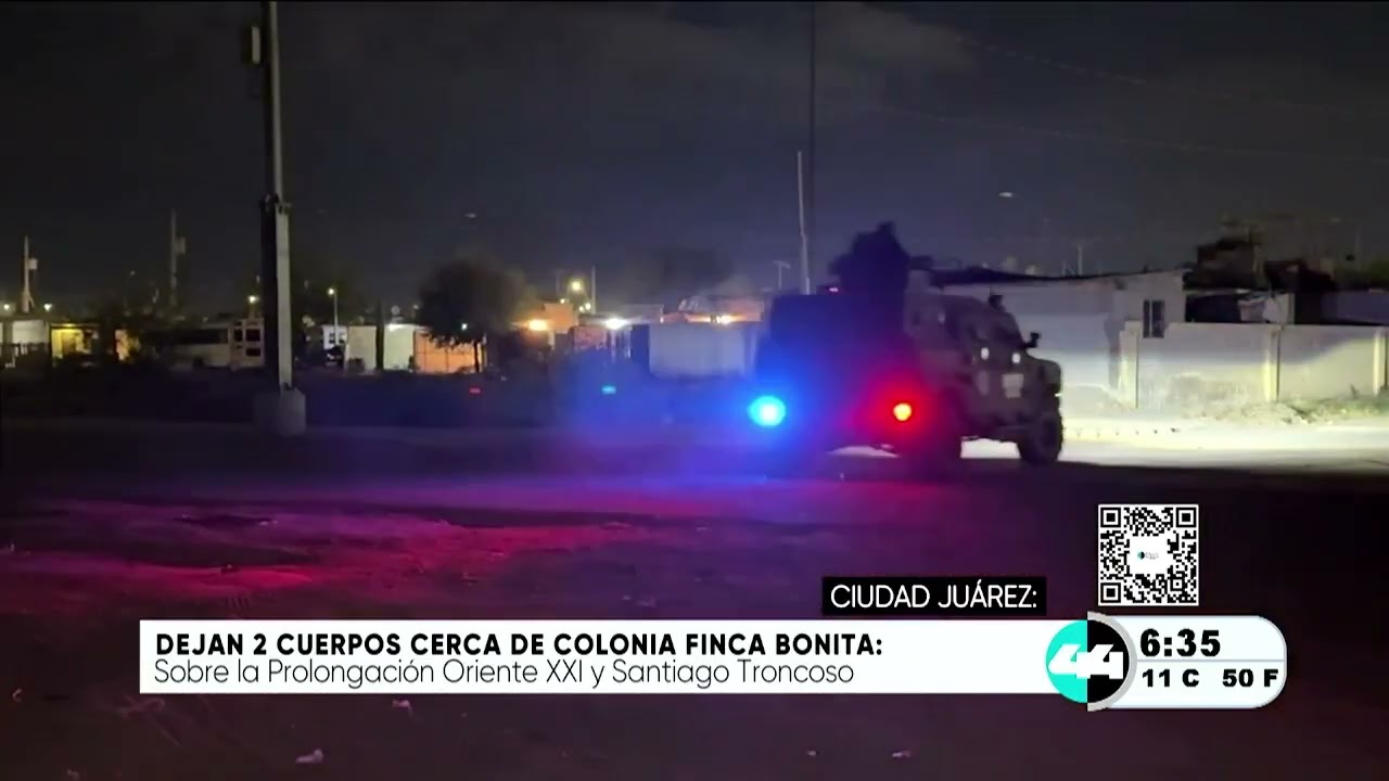 Ciudad Juarez, Chih.- En el sector suroriente de Ciudad Juárez, autoridades reportaron el hallazgo de dos cadáveres que presentaban signos evidentes de violencia y tortura. El descubrimiento se realizó poco antes de concluir el lunes en el cruce de la prolongación Oriente XXI (Siglo XXI) y la calle Santiago Troncoso, en las inmediaciones de la colonia Finca Bonita. Agentes de la Policía Municipal arribaron como primeros respondientes y, tras confirmar el hallazgo, procedieron a acordonar y resguardar la zona. Posteriormente, se notificó a la Fiscalía General del Estado de Chihuahua para el inicio de las investigaciones. De acuerdo con los primeros indicios en la escena, se presume que el homicidio fue perpetrado en una ubicación distinta y los cuerpos fueron abandonados en dicho punto. Hasta el momento, no se cuenta con información sobre la identidad de las víctimas ni sobre los responsables del crimen.