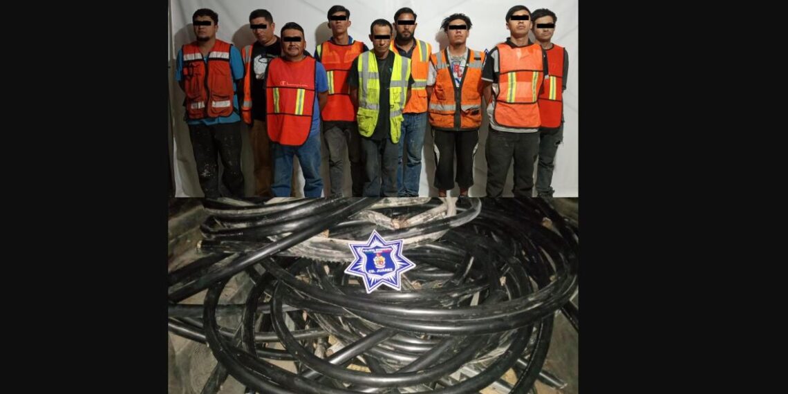Al llegar al lugar, los oficiales sorprendieron a varios sujetos que vestían chalecos de seguridad que ya habían cortado en pedazos varios metros de cable, propiedad de la empresa afectada, el cual subían a una camioneta de la marca Chevrolet Suburban 1500, color gris, modelo 2000, procediendo con su arresto