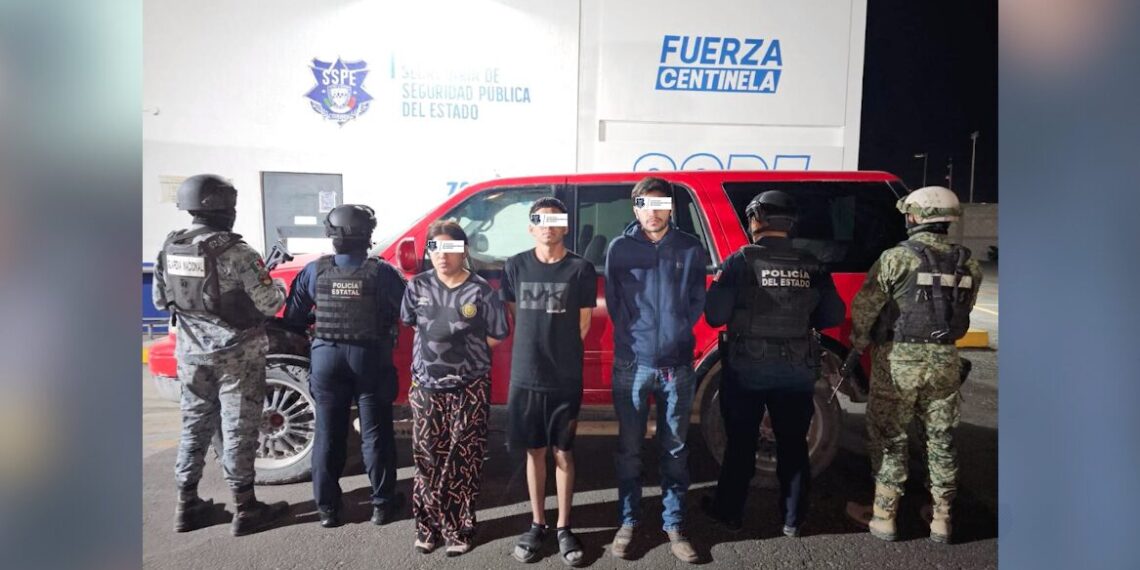 Ciudad Juárez, Chihuahua.- Elementos de la policía estatal detuvieron a tres personas en la colonia La Cañada, tras detectar que conducían de manera imprudente en una camioneta Ford Explorer roja, modelo 2002 y sin placas.