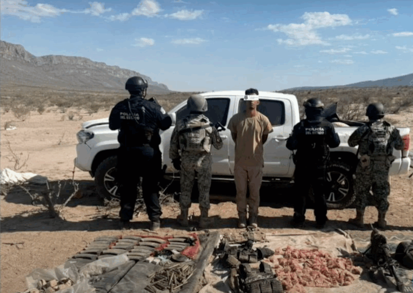 Ojinaga, Chih.– La Secretaría de Seguridad Pública del Estado, en coordinación con otras corporaciones, logró la detención de Manuel Eduardo C. R., de 25 años de edad, por presunta pertenencia a un grupo delictivo y portación de un arsenal.