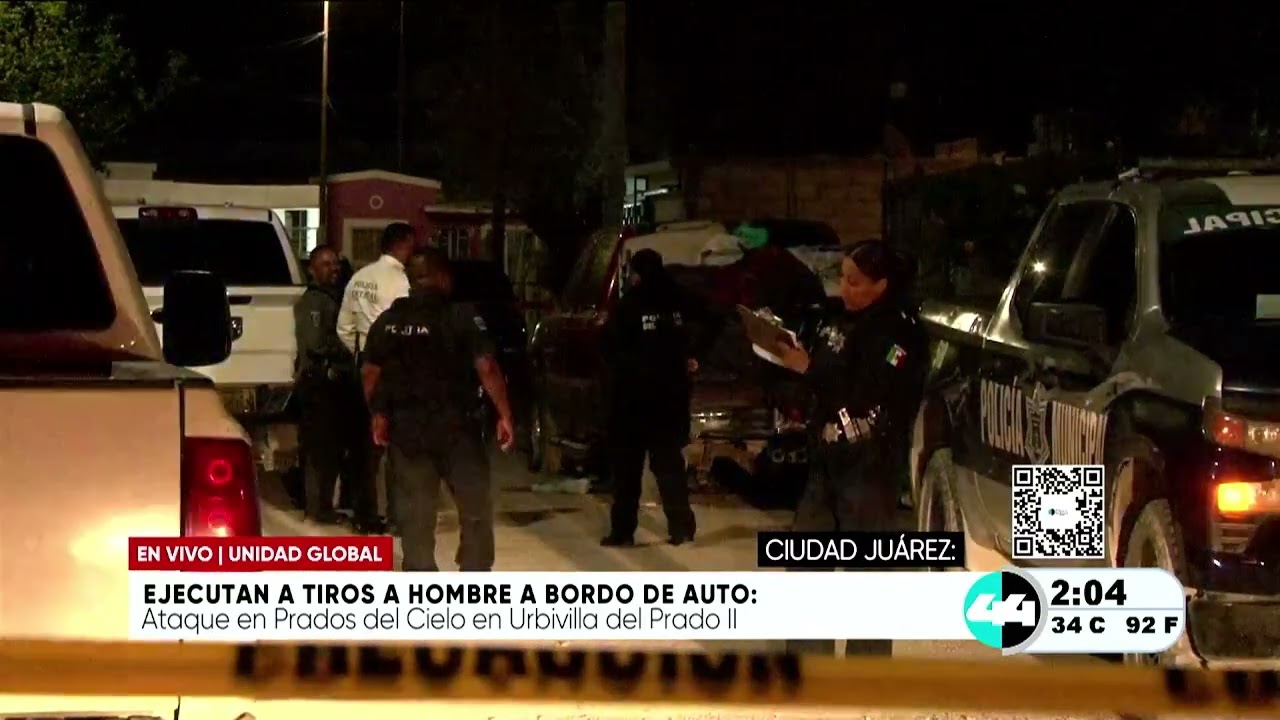 Ciudad Juárez, Chih.- Un hombre fue ejecutado a tiros mientras se encontraba dentro de un vehículo estacionado. El reporte a las autoridades se realizó minutos antes de las 9:00 p.m. del miércoles . El crimen ocurrió en el cruce de las calles Prados del Cielo y Prados del Norte.