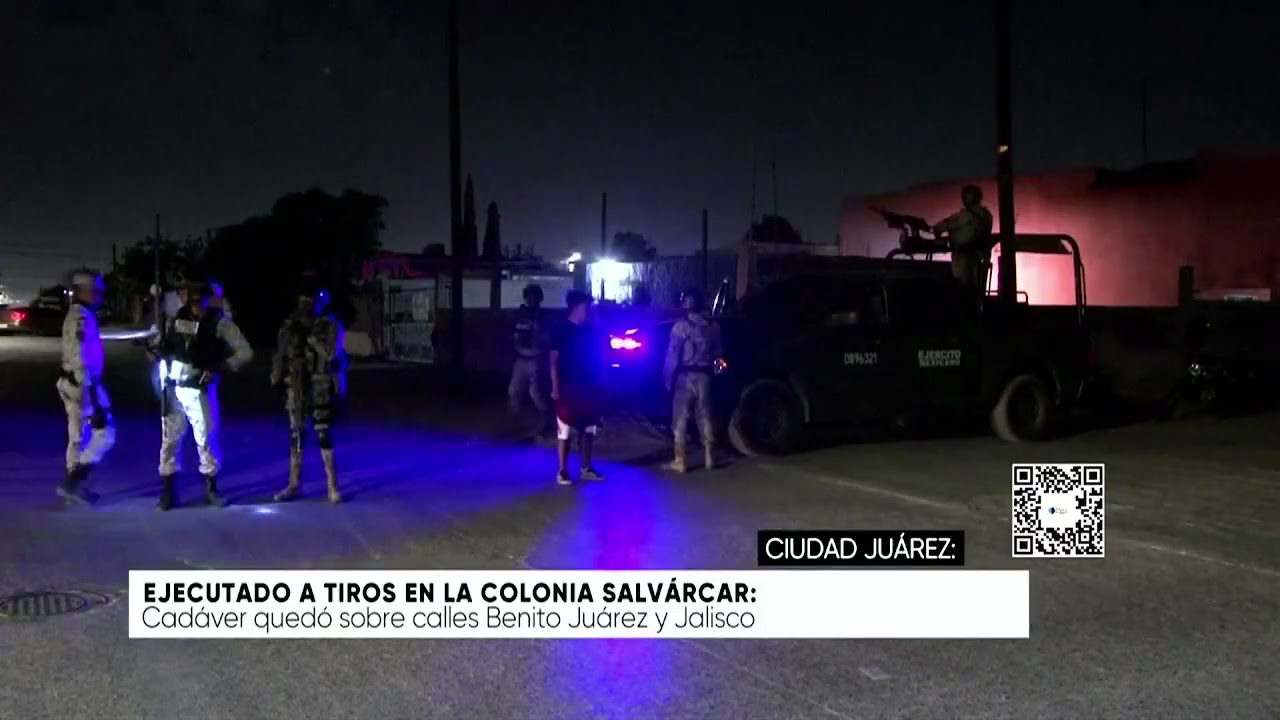 Ciudad Juárez, Chihuahua.-Alrededor de las 9:00 p.m. del pasado lunes, se registró una agresión armada en el cruce de las calles Benito Juárez y Jalisco, en la colonia Salvarcar, lo que generó una fuerte movilización policiaca. El incidente fue reportado por vecinos del sector que, tras escuchar múltiples detonaciones de arma de fuego, localizaron el cuerpo de un hombre sin vida sobre la vía pública.