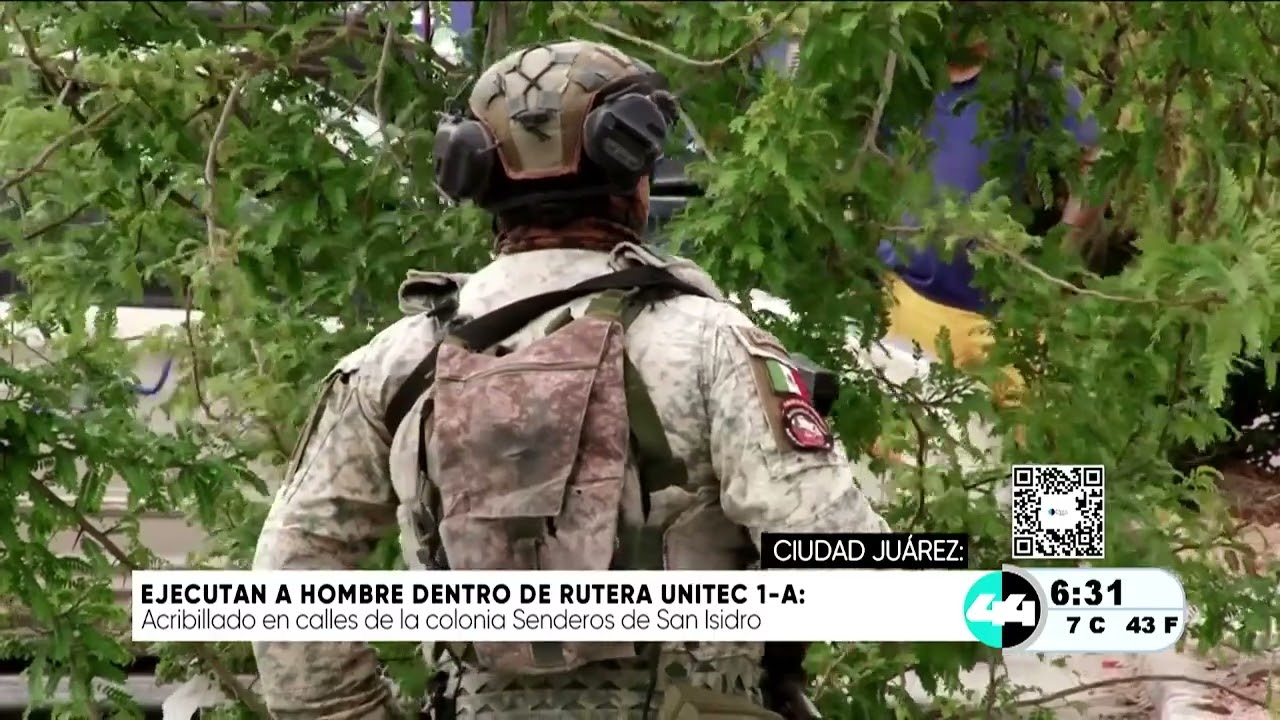 Ciudad Juarez, Chih.- Durante la tarde del sábado, se registró un ataque armado que cobró la vida de un hombre a bordo de un camión de transporte público de la línea UNITEC 1-A. El incidente ocurrió mientras la unidad se encontraba estacionada frente a un centro de servicio de combustible (ServiGas), ubicado en el cruce de las calles Leonardo Solís Barraza y Fundadores de América, en la colonia Senderos de San Isidro. Personas que se encontraban en la zona solicitaron auxilio tras escuchar detonaciones de arma de fuego. Al arribar al lugar, elementos de la Policía Municipal y del Ejército Mexicano confirmaron el hallazgo del cuerpo sin vida en el interior de la rutera. La zona fue acordonada para permitir que agentes de la fiscalía realizaran el levantamiento de evidencias y comenzaran las investigaciones correspondientes. Hasta el momento, no se ha proporcionado información oficial sobre la identidad de la víctima o la detención de los responsables.