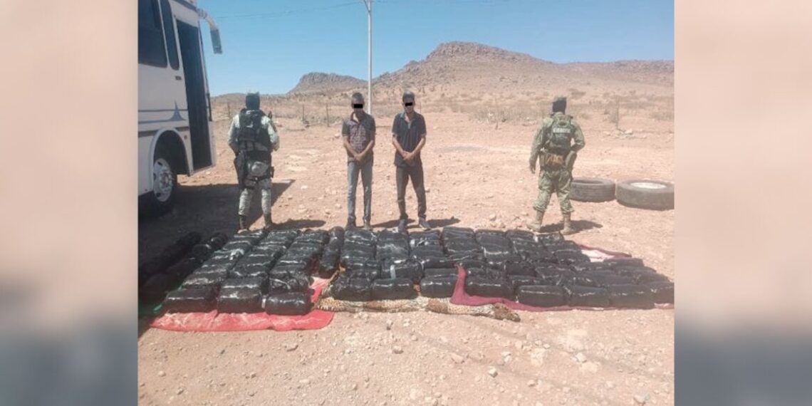 Ciudad Juárez, Chihuahua.- En un operativo realizado por elementos del Ejército Mexicano, se logró el aseguramiento de 497.2 kilogramos de cristal en el punto militar de revisión en Janos, Chihuahua. La droga era transportada en el compartimento de un autobús de pasajeros y tenía como presunto destino final la ciudad de Ciudad Juárez, desde donde se distribuiría hacia Estados Unidos y otras partes de la frontera norte.