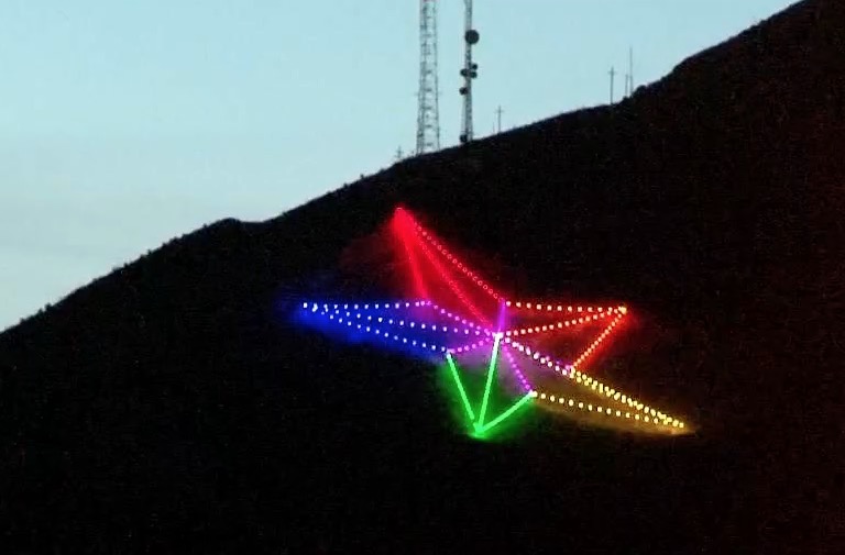 Con luces multicolor brilla la icónica estrella fronteriza