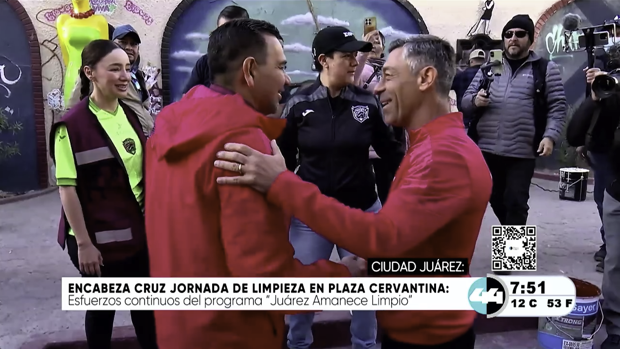 Jornada de limpieza en la Plaza Cervantina Como parte del programa “Juárez Amanece Limpio“, el gobierno municipal de Ciudad Juárez, encabezado por el presidente municipal Cruz Pérez Cuéllar, realizó una intervención integral en la Plaza Cervantina. Esta iniciativa busca fortalecer el tejido social y mejorar el entorno urbano mediante la recuperación de espacios públicos compartidos.