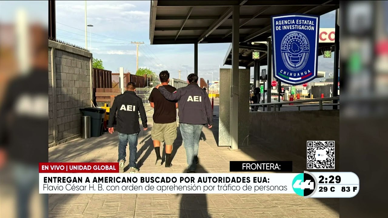 Ciudad Juárez/El Paso.- Las autoridades mexicanas realizaron la entrega de un ciudadano estadounidense a las autoridades de Estados Unidos en el cruce internacional de Puerto Palomas y Columbus, Nuevo México. El detenido, identificado como Flavio César H. B., de 24 años de edad, era requerido por las leyes estadounidenses bajo cargos de tráfico de humanos. El operativo fue coordinado por la Fiscalía Zona Noroeste en el municipio de Ascensión, en colaboración con el Instituto Nacional de Migración (INM) y agentes de Aduanas y Protección Fronteriza (CBP).