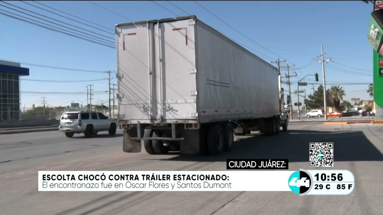 Escolta chocó contra tráiler estacionado