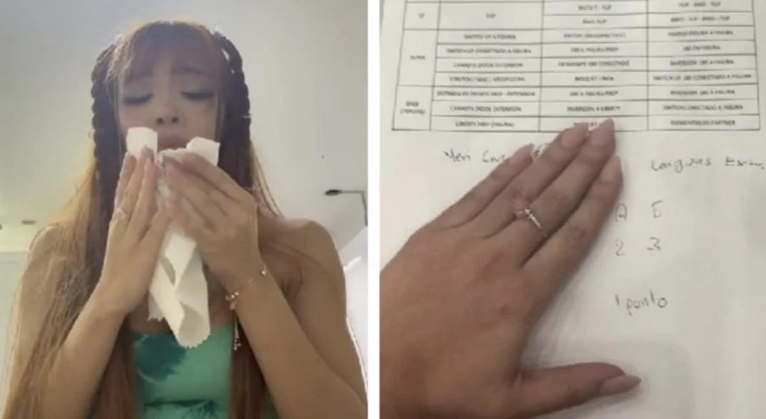 En un reciente video que publicó en su perfil de TikTok, la influencer rompió en llanto porque quedó fuera de la competencia de porristas debido a que solo sacó 1 punto de 10 en el examen que le hicieron y para que la aceptaran en el equipo tenía que sacar por lo menos 5 puntos, pero no quedó ni cerca de lograrlo.